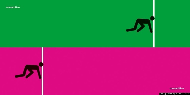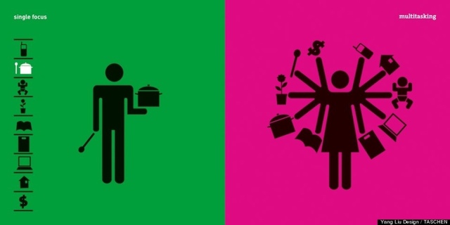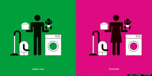 在作家Taschen的新書Man Meets Woman中,加入了北京出生的畫家Yang Liu畫的圖片,用這幾張簡單的圖片,以綠色與粉紅色區隔男性與女性在現今社會中性別角色的不同。在許多性別的刻板印象對比之下,你將明顯看到在工作、家庭、 甚至是在性事上的男女不平等。